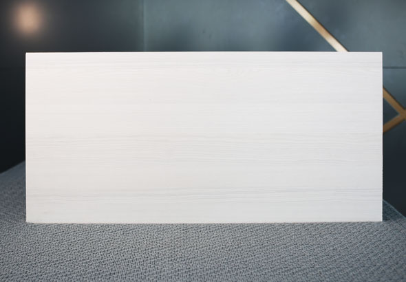 竹香板表面采用進(jìn)口飾紙,耐刮耐磨又抗污;同時用嚴(yán)密封邊條實現(xiàn)防潮功能;當(dāng)我們切開一個角,切面光滑平整,通過橫截面能看到內(nèi)部基材,一看就是有真材實料的。更重要的是,它使用的是專門針對竹纖維特性研發(fā)的環(huán)保型粘合劑,達(dá)到E0級標(biāo)準(zhǔn),安全有保障。