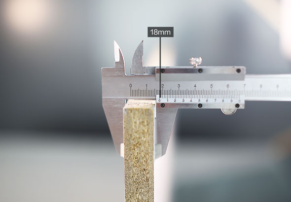 常見的衣柜門邊框厚度僅有12mm,而我們使用游標(biāo)卡尺測量竹香板的厚度,實測到的數(shù)值為18mm,說明它結(jié)實耐用,使用更持久。